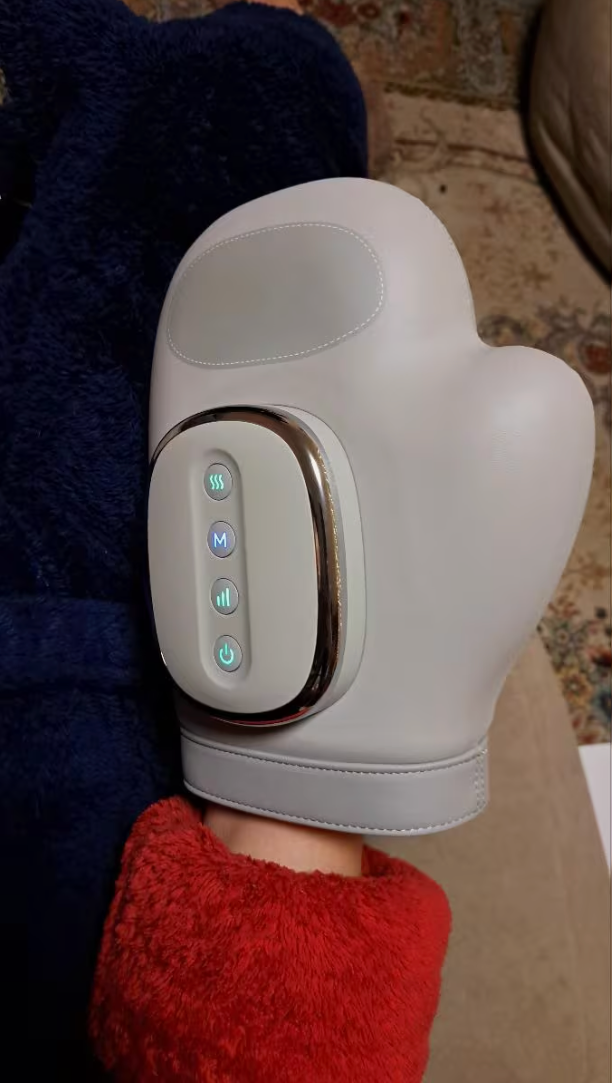 J'ai de l'arthrite donc j'ai voulu essayer ça. Le masseur fait ce qu'il dit et donne un bon massage. Il a différents réglages que vous pouvez sélectionner selon vos besoins et votre confort. J'aime vraiment la chaleur. Le gant est facile à enfiler, confortable, facile à utiliser et livré avec un câble de charge. Le gant se nettoie facilement. Je retire une étoile parce que bien que j'aime beaucoup mon mari n'a pas vraiment aimé donc ça dépend des personnes. Ce que je sais c'est que quand j'enlève le gant après le massage mes mains se sentent vraiment bien
